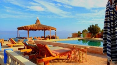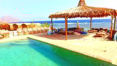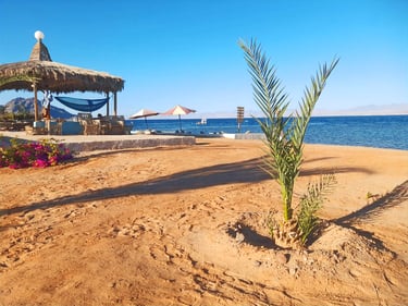 Zodra u in de taxi stapt, wordt u op de weg bij Nuweiba beloond met een prachtig uitzicht op de Rode Zee, ongerept wit zand en kristalhelder water.